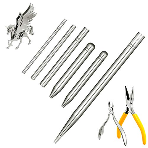 8 Pieces Metal Model DIY Tool Sets 6 Pieces Metal Cone Shape Bending Assist Tools and 2 Pieces Diagonal Plier Nose Plier Tool Kits for 3D Metal Jigsaw Puzzles Model Assembly Jewelry DIY